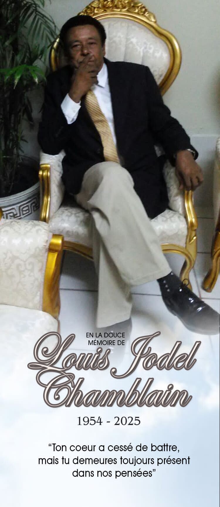 Les funérailles de Monsieur Louis Jodel Chamblain auront lieu le vendredi 5 septembre 2025, à Pax Villa Maison Funéraire et Crématorium, situé au 29, avenue Maïs Gâté à 9h du matin où les salutations débuteront dès 8h AM.